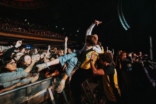 Crowd surfers, confetti, and controlled chaos! From the first song, the venue was a human trampoline. Crowd surfers flying left, right, and centre, security working overtime to catch flailing limbs, and confetti cannons blasting like someone had given a toddler free rein at a party store.